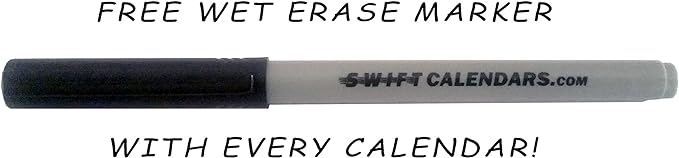 • WET Erase vs. Dry Erase Calendars: Why do we promote Wet Erase markers? Wet Erase most importantly will not ghost or stain! No matter what any company claims - dry erase can stain or "ghost" due to the acids in the inks. Wet Erase is also very durable, doesn't fade and will not wipe off accidentally by rubbing against it while writing in other date blocks. Extra SwiftCalendars wet-erase markers are sold on Amazon.