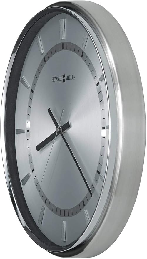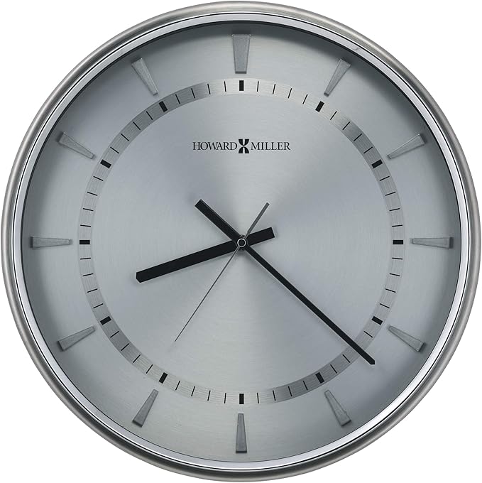 • SIMPLE ELEGANCE: This Howard Miller wall clock boasts tapered, spun-satin hour markers and black hands that contrast elegantly with the silver-finished second hand. The inner silver-finished ring complements the clock's minimalist design, offering a balanced and refined look. With its clean and simple features, this clock makes time-telling easy while adding sophistication to your space.