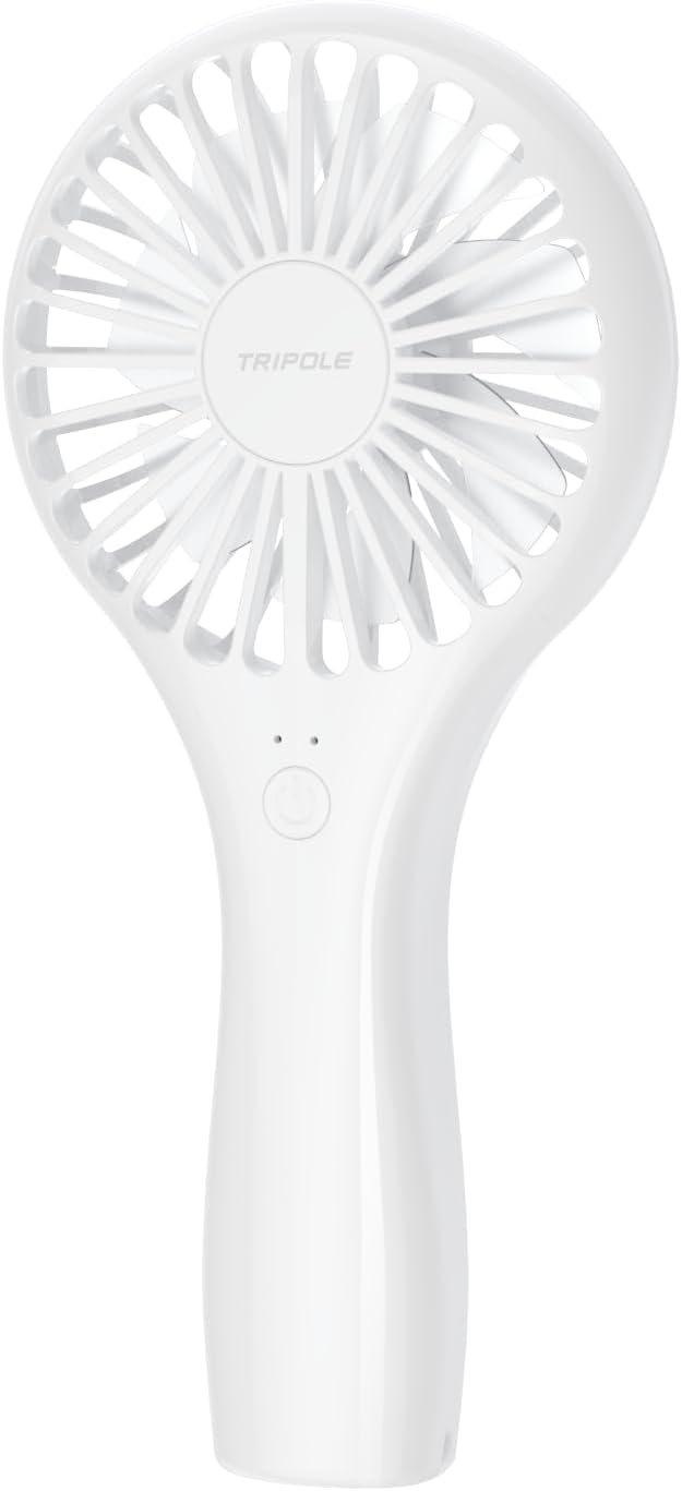 TriPole Handheld Mini Fan Battery Operated Small Personal Portable Fan Speed Adjustable USB Rechargeable Fans for Kids Girls Women Men Home Office Indoor Outdoor Travelling, White