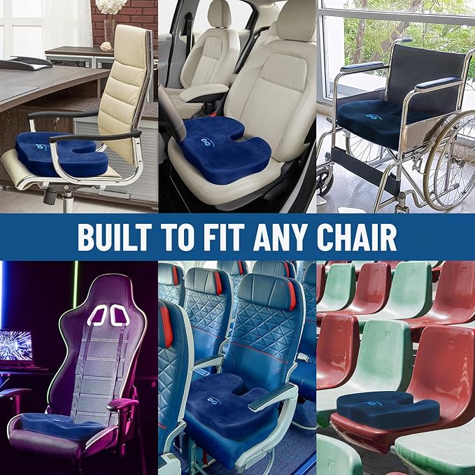 • DOCTOR RECOMMENDED SUPPORT & COMFORT: Watch our video endorsement to hear why experts recommend this product; Our memory foam office chair seat cushion offer exceptional comfort and support, reducing tailbone pain and promoting healthy posture; Ideal for long sitting sessions. Our seat cushion for chair is ideal for extended workdays. Made with premium memory foam, the seat cushion the bottom, conforming to your body for all-day comfort in office chairs or car seats