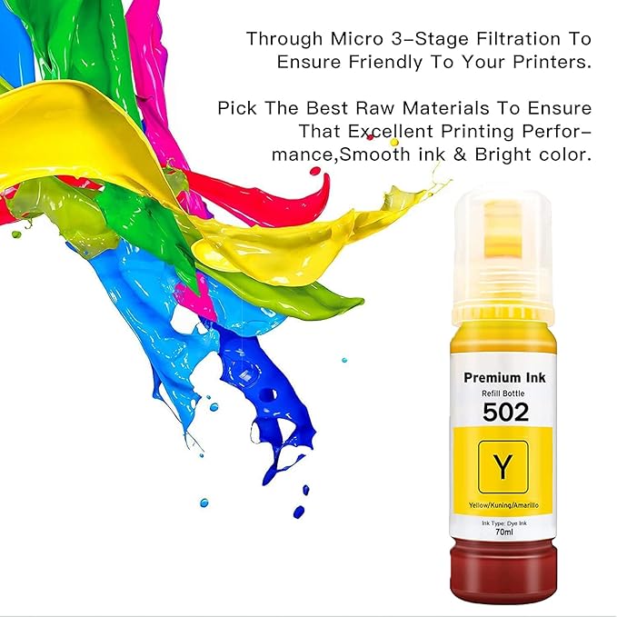 • COMPATIBILITY - Compatible 502 T502 Ink Bottles Replacement for Expression ET-2700 ET-2750 ET-3700, Workforce ET-3750 ET-4750 ST-2000 ST-3000 ST-4000, Premium ET-7750 ET-7700 EcoTank Printer.