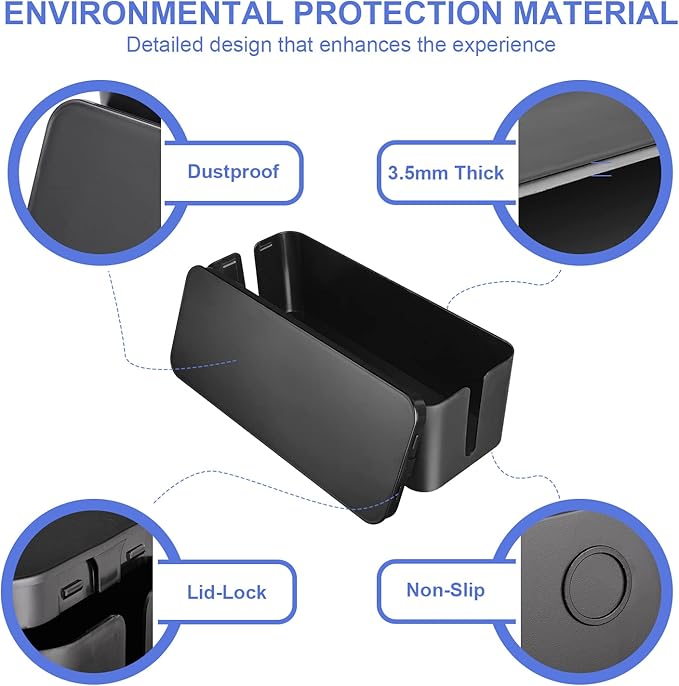 • 【Accessaries Upgrade】Our cable management boxes are equipped with 28 pcs cable management set that concludes 6 x One Slot Cable Clip Holders,2 x Triple Slot Cable Clip Holders,2 x Six Slot Cable Clips Holders ,2 x Triple Slot Cord Clips ,6 x One Slot Cord Clips,10 x Reusable Cable Ties.That help you even better organize your cables or wires.