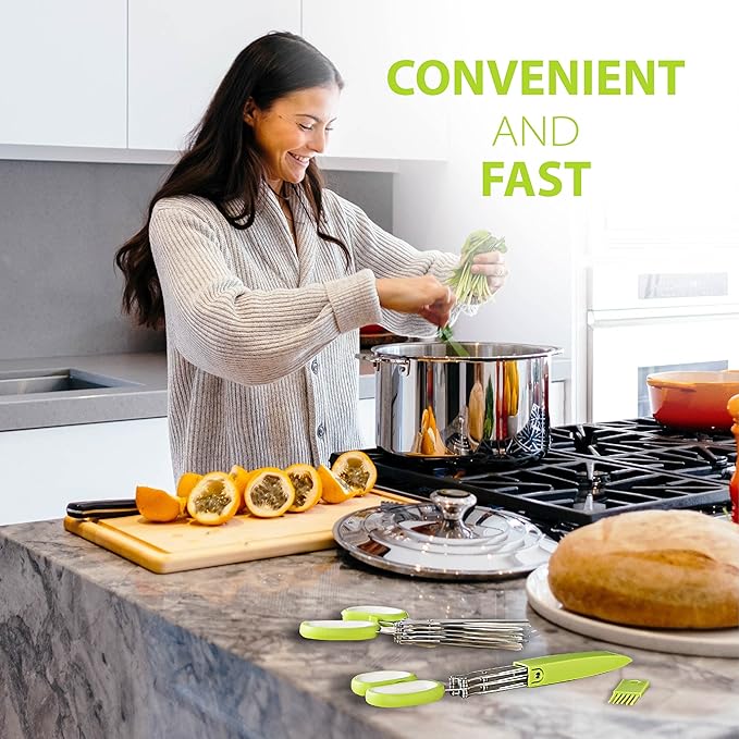 • Effortless Herb Chopping with 5 Sharp Blades - SASACIA herb scissors feature five stainless steel blades to cut herbs, lettuce, cilantro, and green onions evenly in seconds, saving you time in the kitchen.