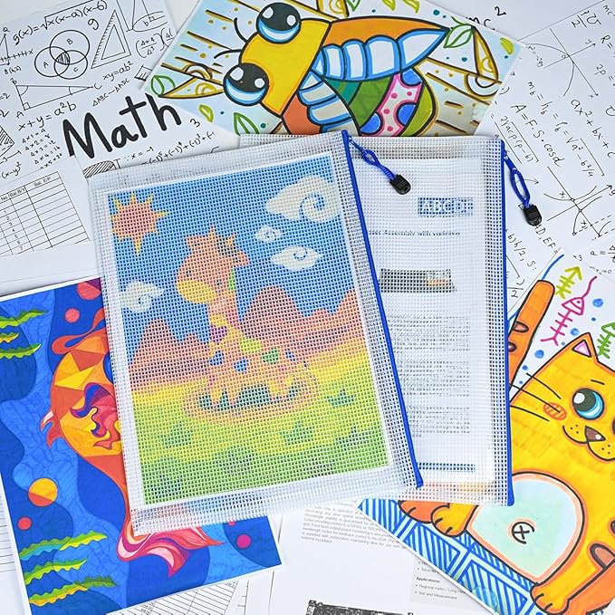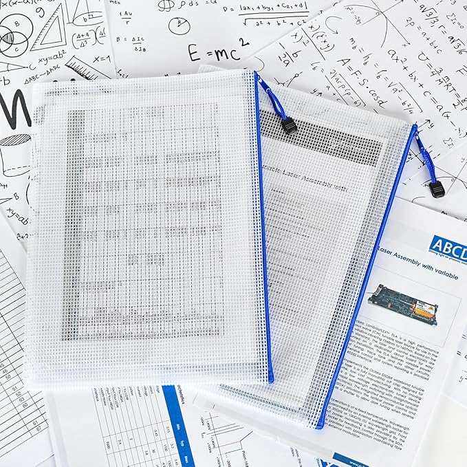 AUSTARK 20 Pcs Zipper File Bags, Plastic Mesh Pouch, Board Game Storage Bag, Waterproof Bags for Office School (A4 Size 13.4''x9.4'', White and Blue)