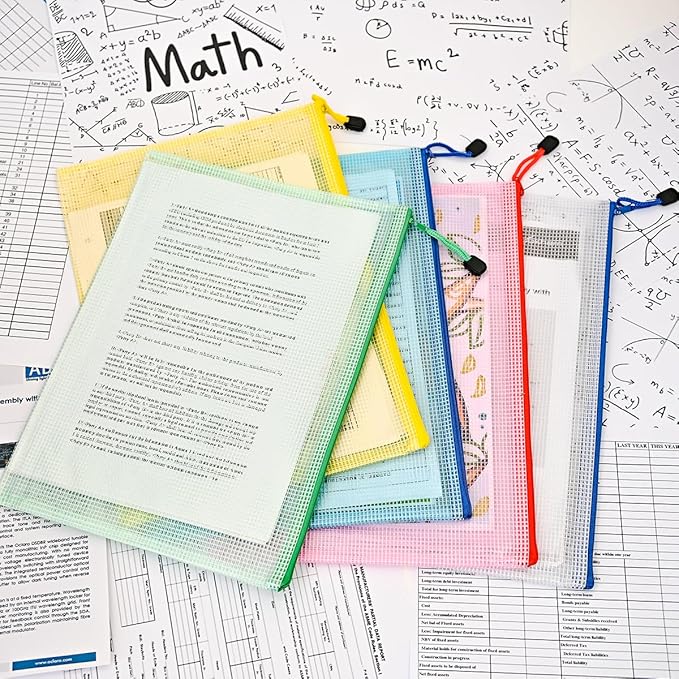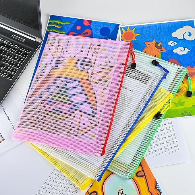 AUSTARK 20 Pcs Zipper File Bags, Plastic Mesh Pouch, Board Game Storage Bag, Waterproof Bags for Office School (A4 Size 13.4''x9.4'', Multicolored)