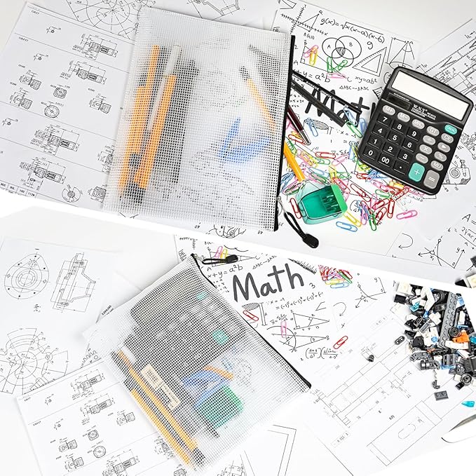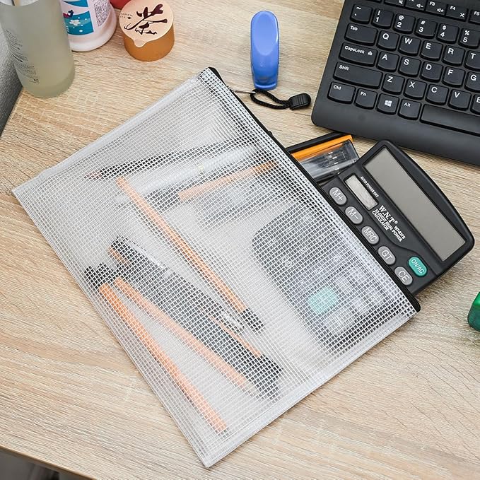 AUSTARK 20 Pcs Zipper File Bags, Plastic Mesh Pouch, Board Game Storage Bag, Waterproof Bags for Office School (B5 Size 11.4''x8.2'', White and Black)