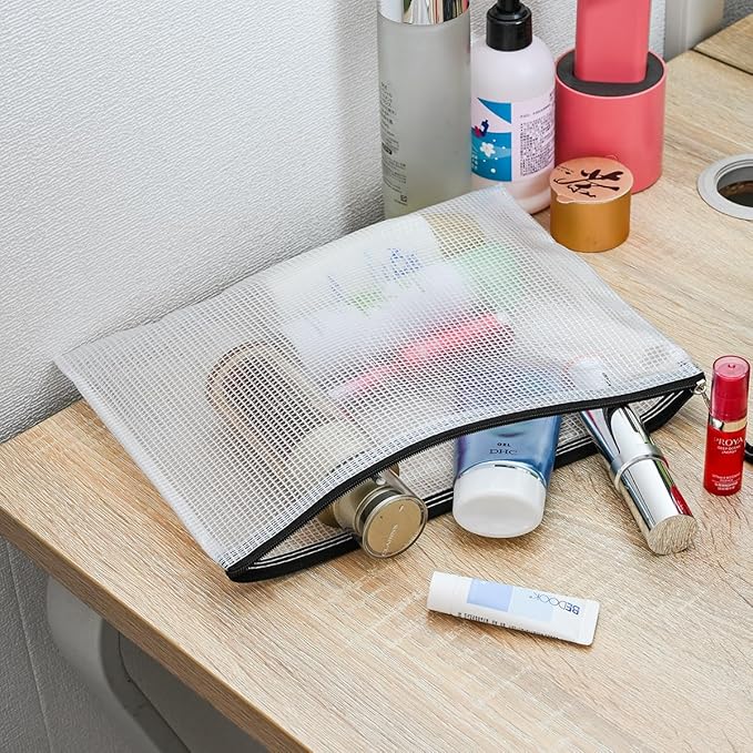 • Mesh pouches with translucent design. A solid PVC grid layout with moderate transparency could distinguish things in it easily, also protect your privacy at the same time