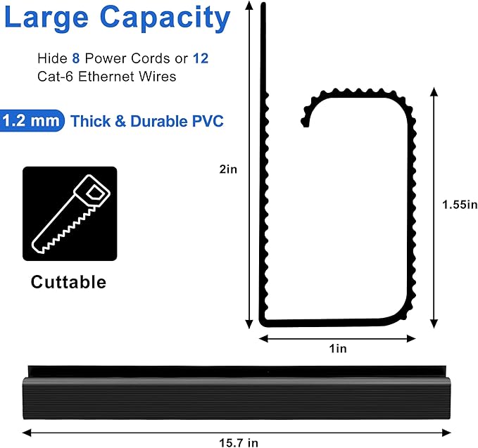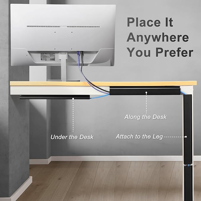 • Large-Capacity Desk Cable Management Tray: Each raceway features a spacious channel that holds up to 8 power cords or 12 Ethernet cables, making it perfect for full desk cable management. Easily organize and conceal computer cables, HDMI cords, Ethernet lines, and more — creating a safer and tidier desk environment