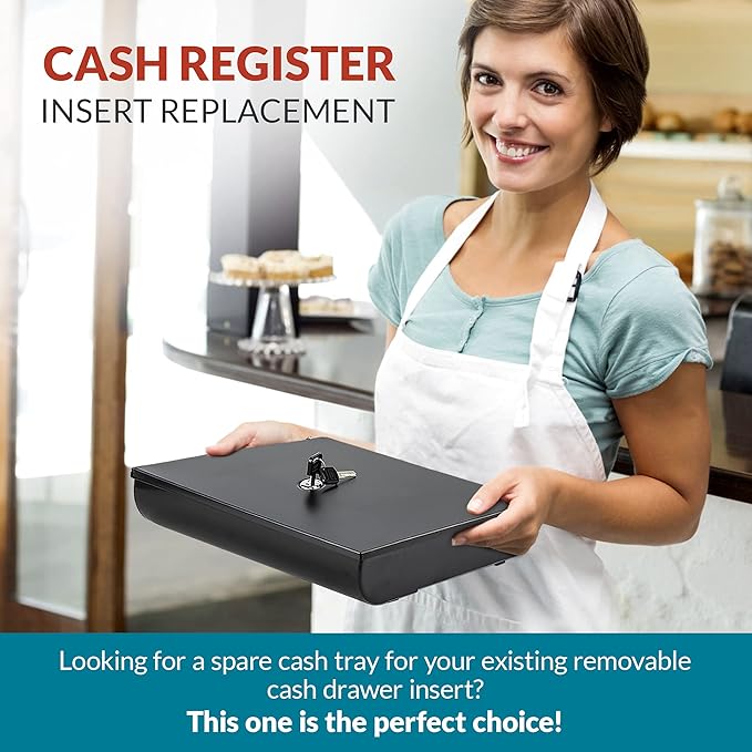 • FOR BUSINESS USE: The ideal cash box with lock for small, medium, or big businesses, this can be used as a spare cash register tray insert for your cashier drawer or an additional cash organizer for bills and coins. This is suitable for cafes, shops, and stores.