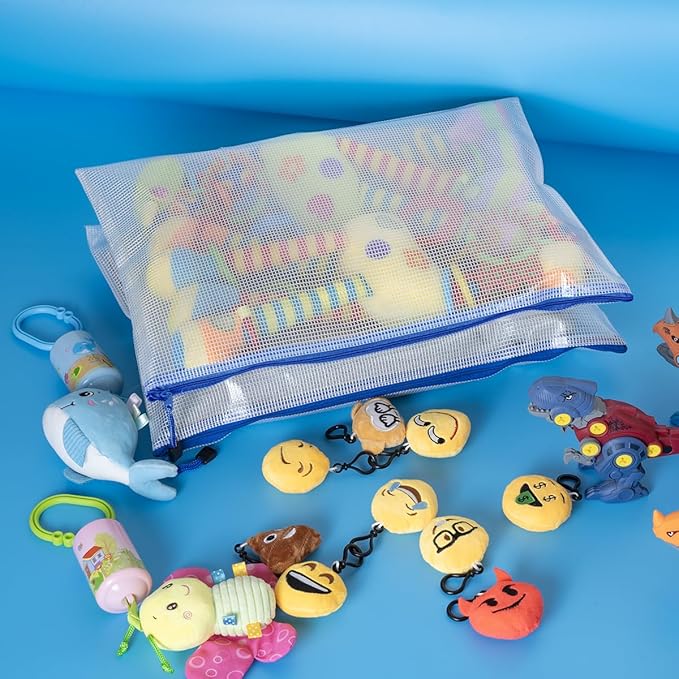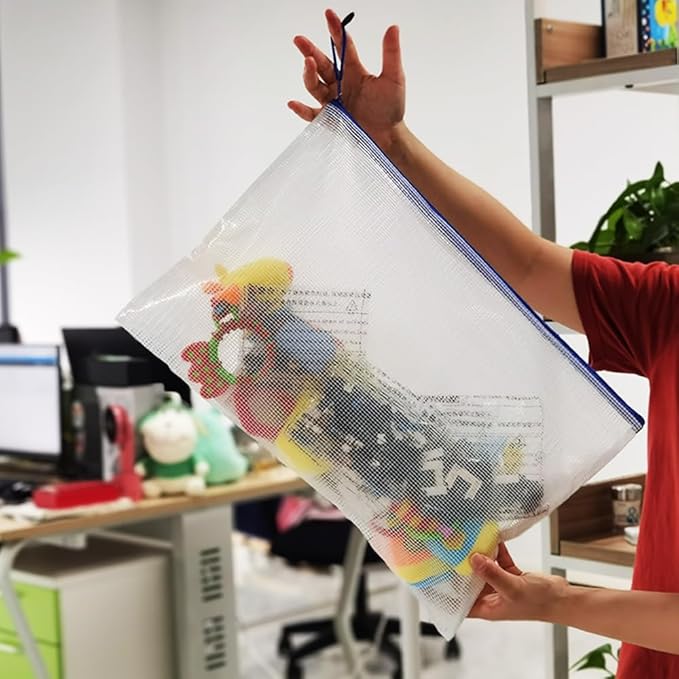 AUSTARK 20 Pcs Zipper File Bags, Plastic Mesh Pouch, Board Game Storage Bag, Waterproof Bags for Office School (A3 Size 16.9''x12'', White and Blue)