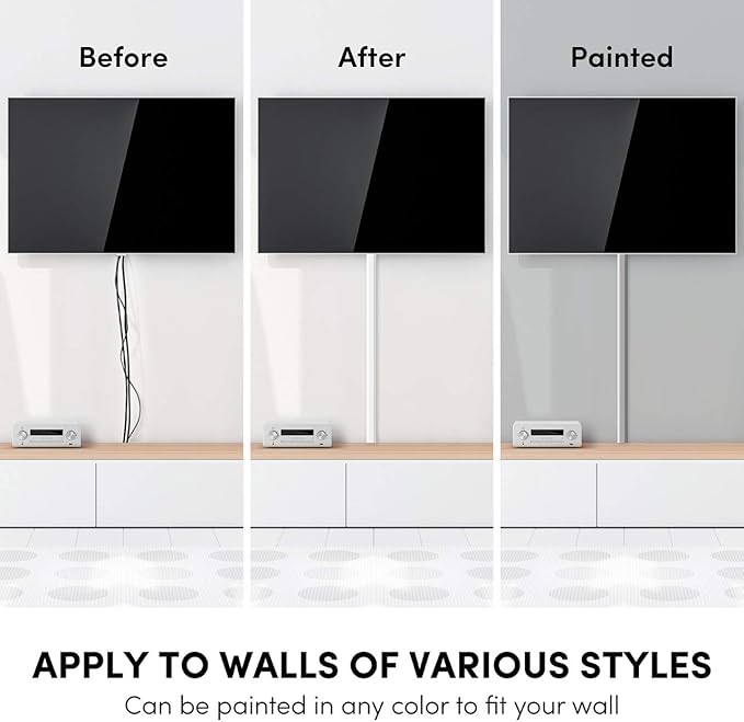 • Problem Solved - The days of messy cables all over your house are coming to an end now as EVEO provides you with the cord hider that will make your house look neat! Our cable management kit comes with all necessary components for smooth installation. This cord hider wall mounted tv fits up to 153" of cable (up to 0.95" Wide / 0.5" high - for example: 1 HDMI cables + 2 regular USB/AUX cables). Super steady locked structure and fine finishing our cord hider wall perfectly fits your home decor.