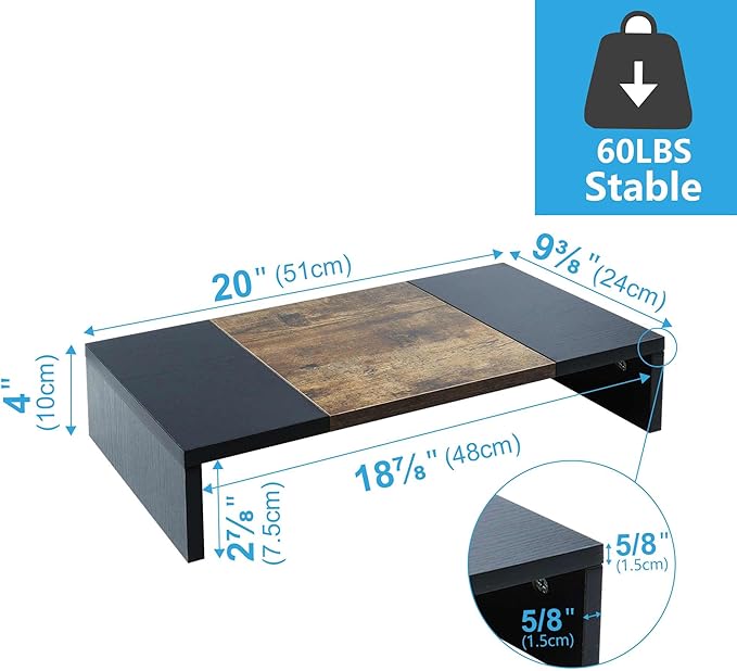 • 【Better Support】Stand can hold 60Ibs, there is a thick steel bar stabilizing support structure on the back avoid shaking. TEAMIX monitor riser made of high quality MDF wood board, strong and sturdy.
