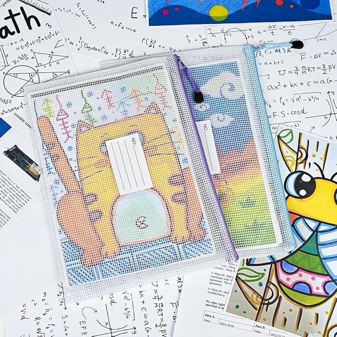 • 12 Pcs Mesh zipper bags with label pocket, A4 size 13.4 x 9.4 inch. Widely used in Office Home Hospital and Travel: Great zipper file bags, board game storage bags, pencils pouches, puzzles bags, cross stitch projects bags or keeping various craft projects organized. These mesh bags could meet your needs in all ways.NOTE: Manufacturer Minimum Age: Over 3 Years Old