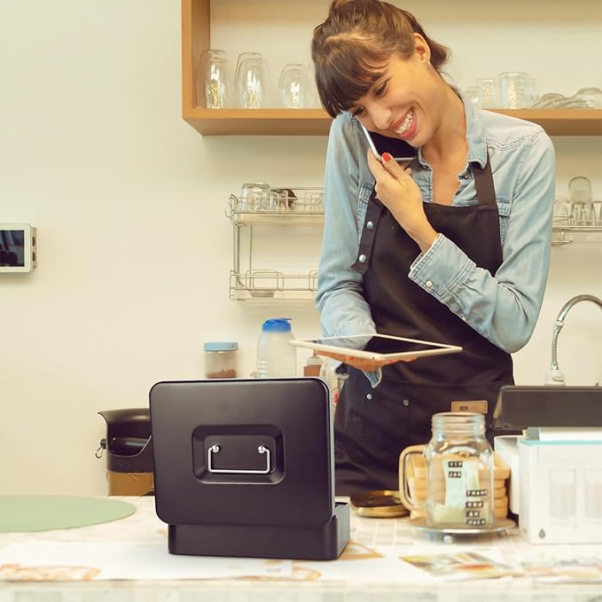 • EASY TO USE: Our money saving box has four spring clips, which fix the cash in place and prevent your cash from being blown away by the wind when used outdoors. The stainless steel handle makes it easy to carry around, making it your perfect portable security solution for money.