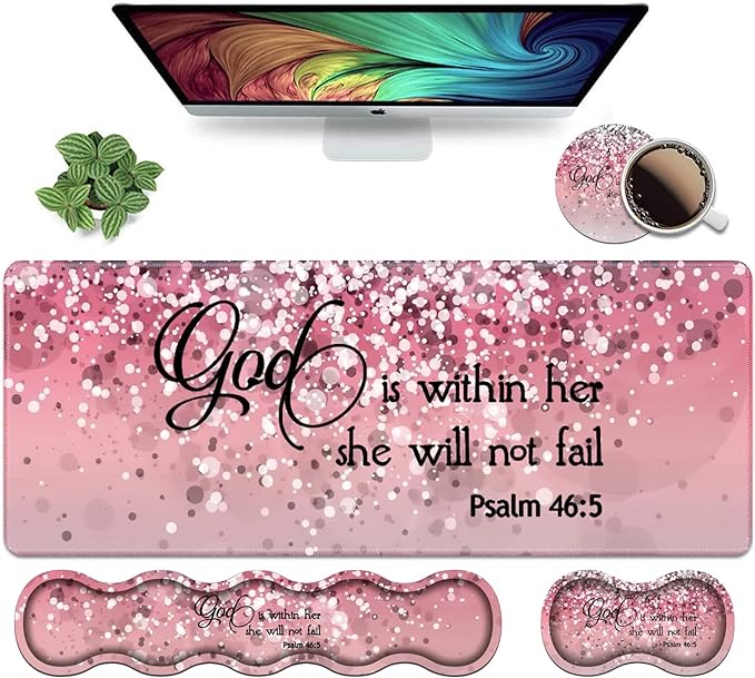 Ergonomic Keyboard Wrist Rest & Mouse Pad Wrist Rest Set,Large XXL Gaming Desk Mat 31.5"x 11.8",Memory Foam, Easy Typing Pain Relief,Multifunctional Desk Mat for Office & Home,Bible Verses Psalm 46:5