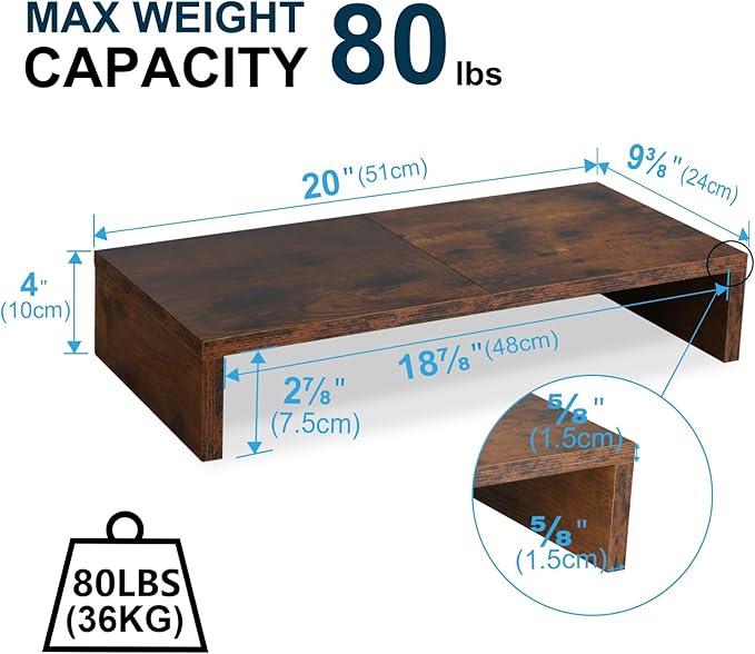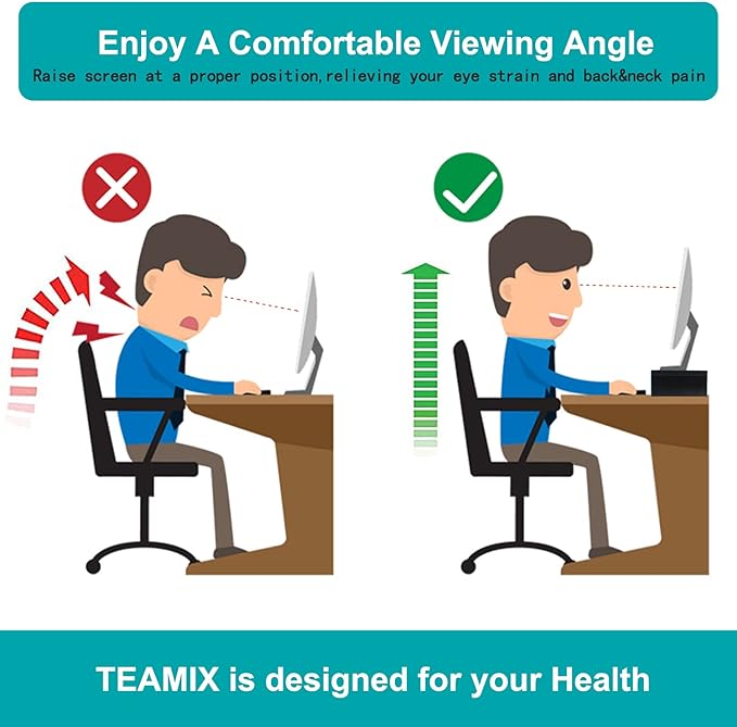 • 【Better Support】Stand can hold 80Ibs, there is a thick steel pipe stabilizing support structure on the back avoid shaking. TEAMIX monitor riser made of high quality MDF wood board, strong and sturdy.