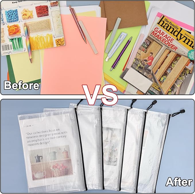 • [Premium Stuff]: These mesh bags are made of PVC, safe and non-polluting, thick mesh stuff, waterproof and moisture-proof. Protect your documents from moisture and keep them flat and clear. Smooth metal zipper, sturdy and strong.