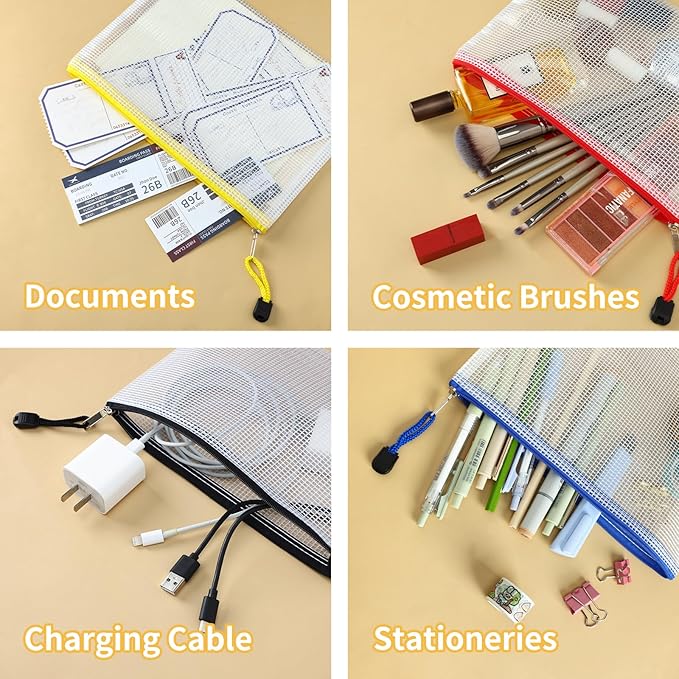 • [Perfect Quality]: These mesh bags are made of perfect quality PVC, safe and non-polluting, water and moisture resistant. Protect your documents from moisture and keep them flat and clear.