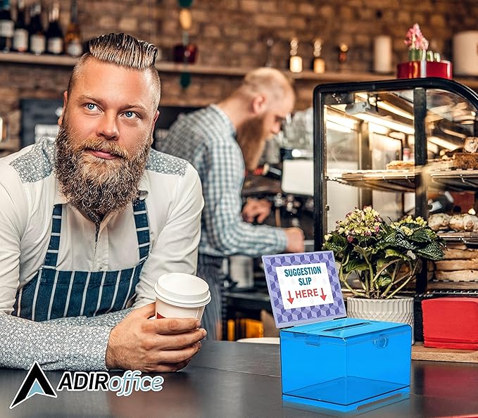 AdirOffice Crystal Blue Acrylic Donation Box with Lock - Multipurpose Suggestion Box for Office, Fundraisers, or School Voting - 6.25x4.5x4 Inches
