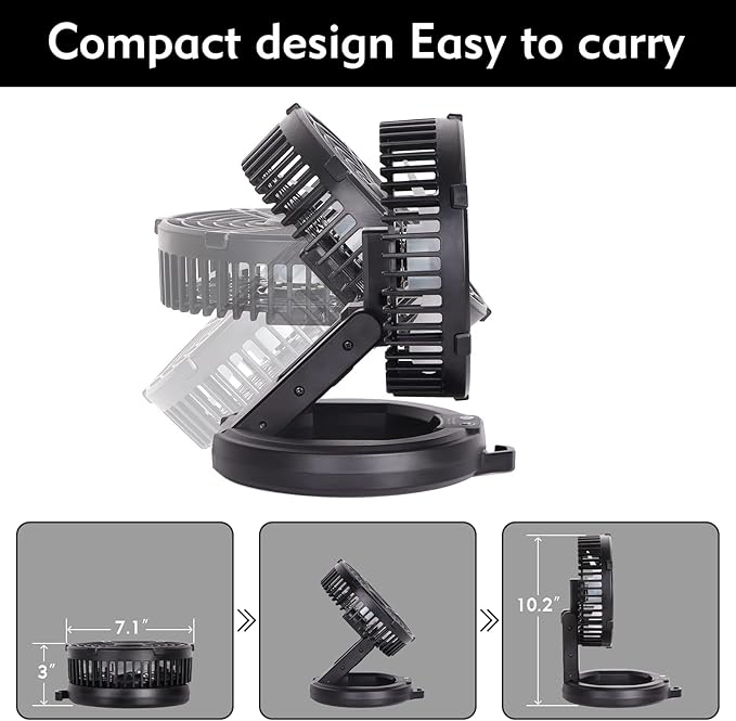 • 🍃【Backpack Size & Sturdy Material】 The overall size of the foldable camping fan is small enough to easily fit into the backpack, making it easy to carry and store without any additional burden. The foldaway fan uses USB charging, which means you can connect it to your power bank, laptop, or car power source for charging. Supports 2A fast charging and can be fully charged in just 6 hours. Made of high-quality ABS+PC material, the wide and sturdy base prevents tipping.