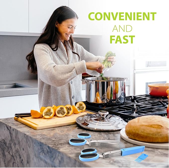 • Effortless Herb Chopping with 5 Sharp Blades - SASACIA herb scissors feature five stainless steel blades to cut herbs, lettuce, cilantro, and green onions evenly in seconds, saving you time in the kitchen.