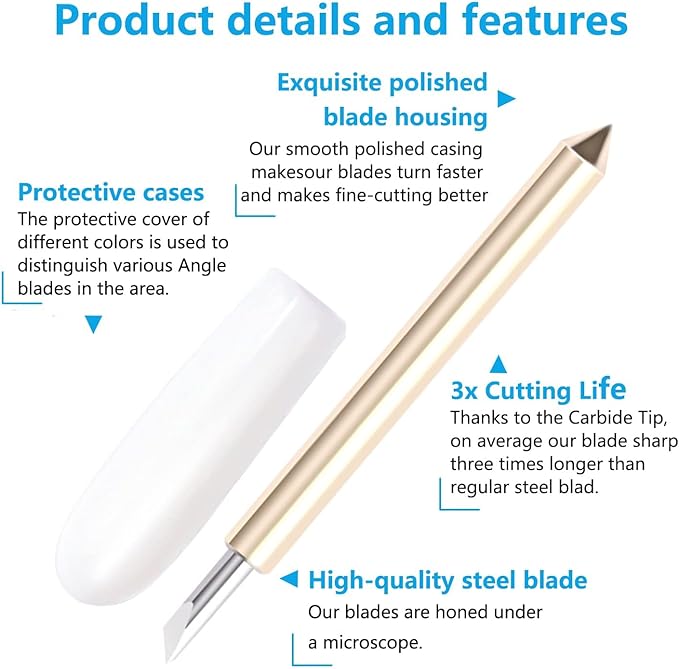 • 【COMPATIBILITY】-The package includes 5 Premium Fine Point Blade and Housing Perfect Compatible with Explore Air one/ Air /Air 2, / Air 3 and Maker, Maker 3 machines. Just cut and apply the designs where you want!