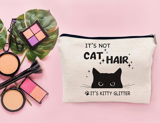 It's Not Cat Hair It's Kitty Glitter Funny Black Cat Makeup Bag Make up Cosmetic Bag Small Zipper Pouch,Birthday Gifts for Cat Lovers Women Sister Daughter