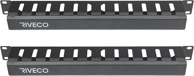 RIVECO 2PCS 1U 12 Slot Rack Manager, Server Rack Cable Management, Cord Wire Organizer with Cover for Network Rack Cabinet Horizontal Mount, 19-inches Cable Raceway