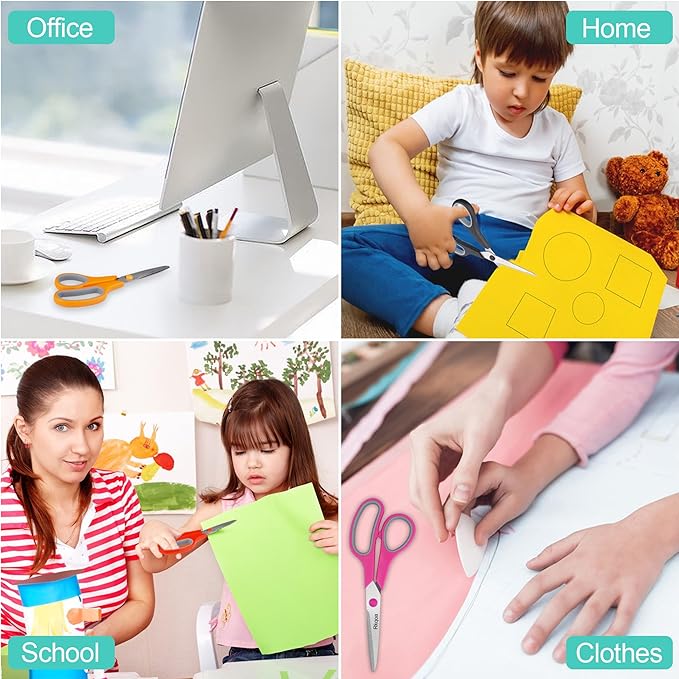 • Multipurpose/ Vibrant 6 Colors Pack Scissors. Different Colored Scissors, Can Be Used In Different Places. Ease to holding, work perfectly for their crafting for many different tasks. Comfortable to use in: Office, School, House Household, High/Middle School Students Teacher, Sewing Fabric Art Craft DIY, laundry room, bathroom, garage, kitchen or other occasions supplies.