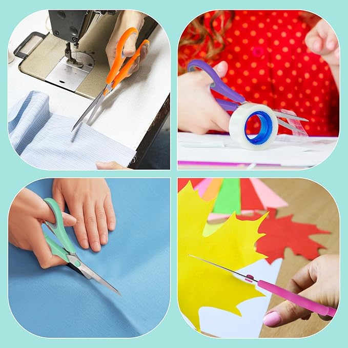 • Multipurpose/ Vibrant 6 Colors Pack Scissors: Classic Colors: Black, Red. Special Colors: Aqua, Pink, Purple, Orange. Different Colored Scissors, Can Be Used In Different Places. Ease to holding, work perfectly for their crafting for many different tasks. Comfortable to use in: Office, School, House Household, High/Middle School Students Teacher, Sewing Fabric Art Craft DIY, laundry room, bathroom, garage, kitchen or other occasions supplies.