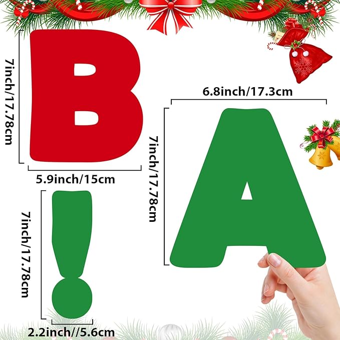 • 【Christmas Red and Green Design】This Christmas theme red and green large letter punctuation decoration set is very suitable for decorating Christmas holiday classrooms. The bright colors of red and green make your class look fresh and bright, full of energy, and create a full Christmas holiday atmosphere.