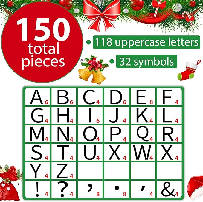 • 【Abundant Quantity】You will receive a Christmas red and green color learning letters pack containing 150 capital letters and 6 common punctuation marks. We also offer enough tools, which enables you to quickly paste these interesting letters to any smooth surface.