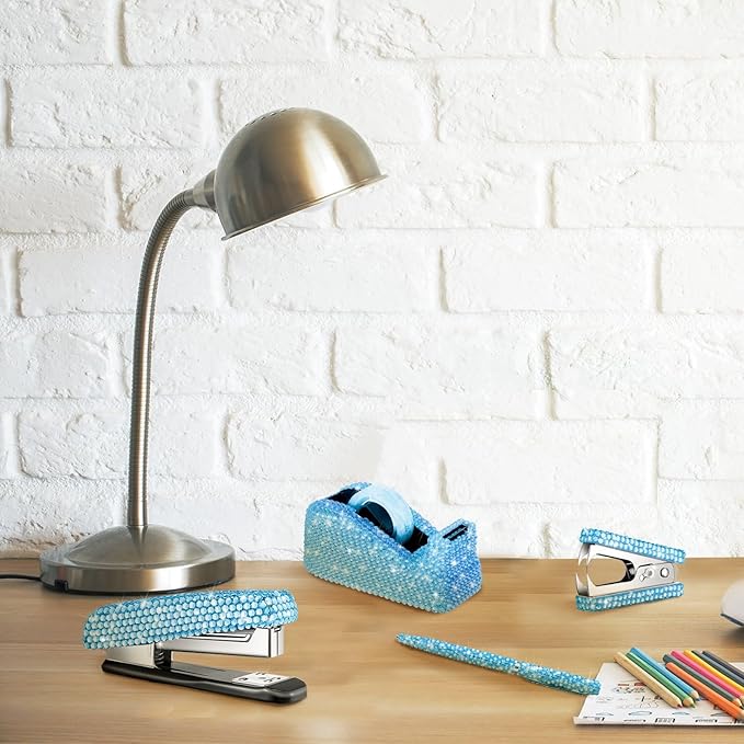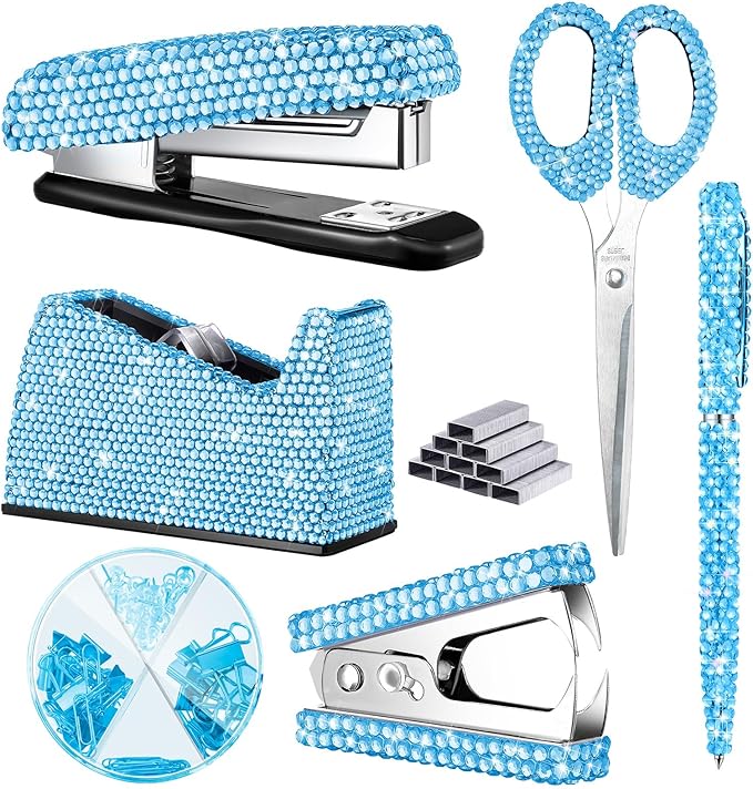 • Practical to Apply: our diamond pen, scissor, bling stapler are suitable for your study or home use, tape dispenser can help you cut tape according to your needs, practical and convenient