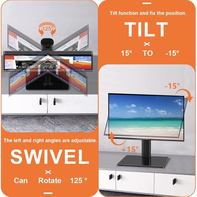 • Height Adjusable and Swivel Monitor Arm:the Full Motion Monitor Desk Mount offers +15° to -15° tilt, ±40° swivel, 360° rotation, and height adjustment along the center pole.