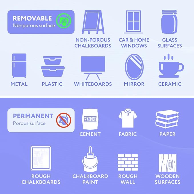 • Versatile: Suitable for use on chalkboards, glass, mirrors, and most non-porous surfaces. Ideal for mothers, students, artists, and vendors