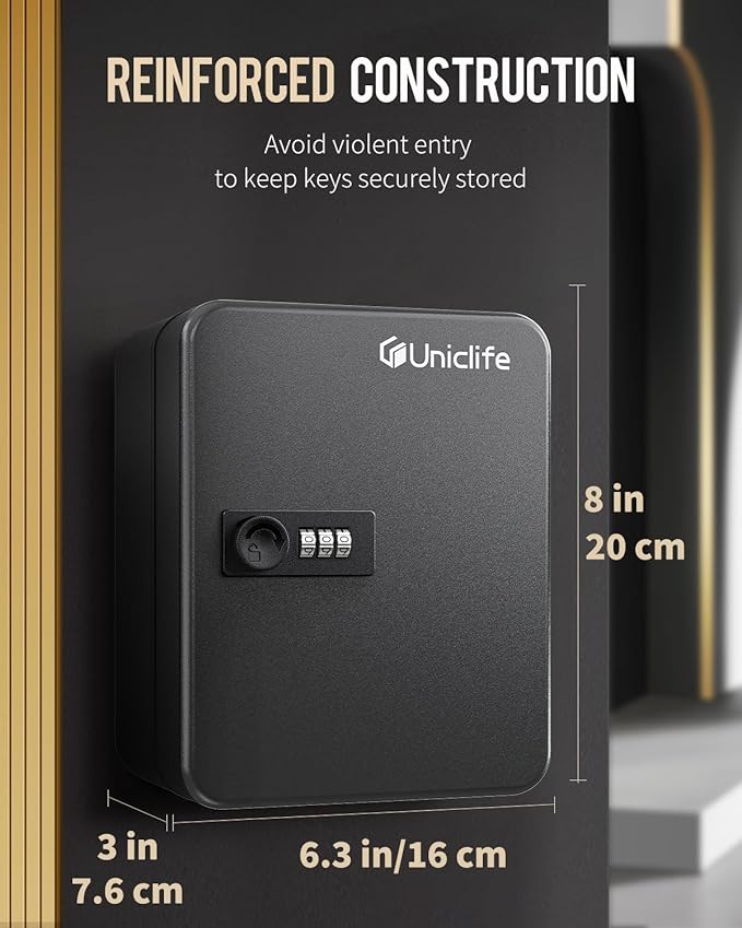 • Combination Lock: Provide a secure 3-digit code lock with 1,000 combination methods to lock/unlock the cabinet. Ensure you the private and exclusive access to the keys.