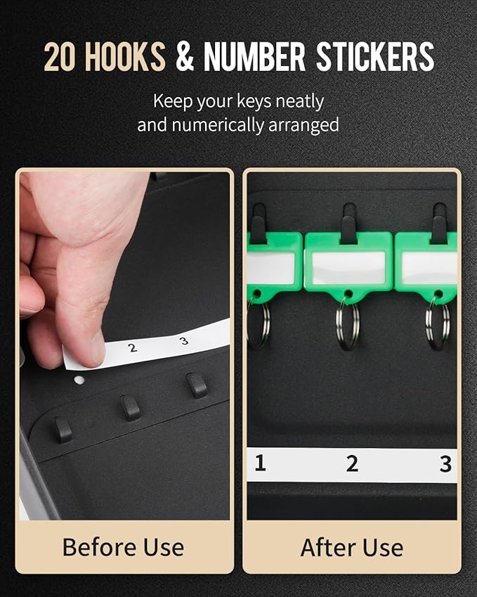 • Easy to Track: Contain 4 sheets of number stickers and 20 hooks to arrange keys in numerical order and keep them neatly organized. (Screws and wall anchors are included.)