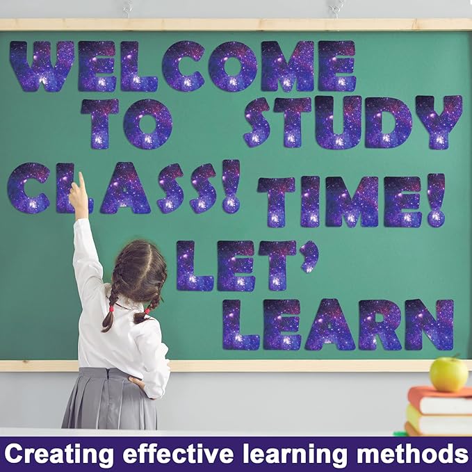 • Large size: Each Galaxy bulletin board letter is approximately 7 inches in size, making it great to decorate your bulletin board, classroom wall, or any smooth surface where children can easily see them.