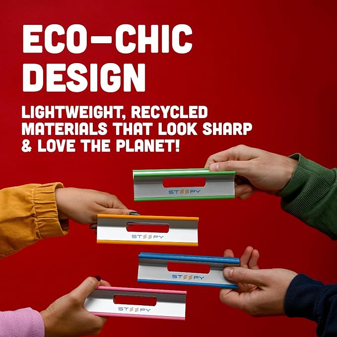 • SETUP'S A BREEZE - Just unfold and go—no screws, no hassle. Instant use, instant time saver! Steepy desk laptop stand is a travel laptop stand made out of strong and durable recycled plastic, with rubber edges to provide the sturdy and stable support your device needs and prevent it from sliding or skidding.