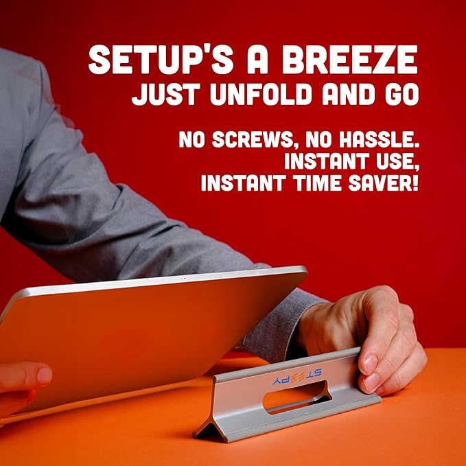 • POSTURE PERFECTION - If you spend countless hours seated working at the office or home, a bad posture could be the cause for a serious back problem, use this portable laptop stand portable & reduce the back strain with this macbook stand for writing. Get the ideal working posture to get the most out of your working hours without any backlash using Steepy's portable computer stand.