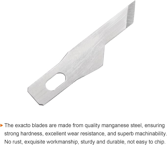 • Material - The exacto blades are made from quality manganese steel, ensuring strong hardness, excellent wear resistance, and superb machinability. No rust, exquisite workmanship, processed by multiple processes, sturdy and durable, not easy to chip.