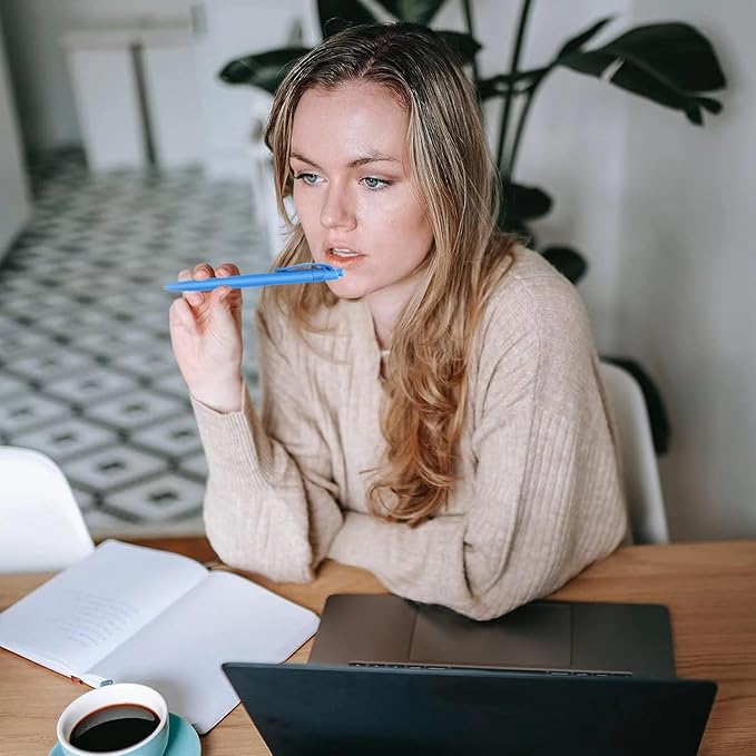 • 【Smooth writing experience】: The Retractable design ensures that these ballpoint pens have blue ink ready to use at any time. The blue ink color produces clear text, making it easy to read. The pen tip slides effortlessly on paper, providing a smooth and enjoyable writing experience that will make any task more comfortable.