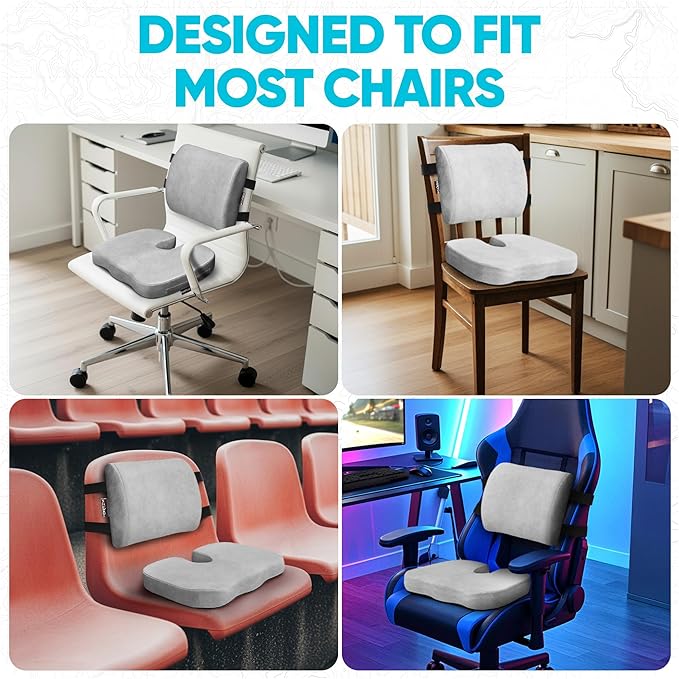 FORTEM Seat Cushion, Office Chair Cushion, Lumbar Support Pillow for Office Chair, Memory Foam Sciatica Coccyx Tailbone Pressure Pain Relief, Car Sitting Pad, Washable Non Slip, XL