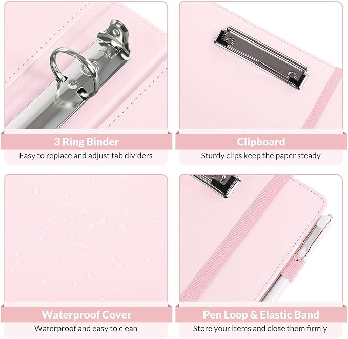 • Premium Material: SKYDUE clipboard with storage made of premium PU leather material, waterproof, heavy-duty, and easy to clean up. This sturdy 1-inch 3-ring binder could hold more documents. The metal clip provides a firmer grip, and the elastic band closes easily