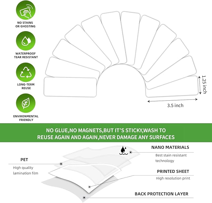 SVNOOC Multi-Use Removable Dry Erase Labels Stickers, White, Reusable Sticky Notes for Kitchen Office School All Purpose Use(1.25 * 3.5 inches White)