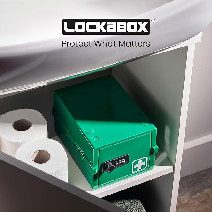 Lockabox Mini™ | Small Medicine Lock Box with Combination Lock (Half Letter Sized) | Mini Medical Lockable Box For Tablets, Creams & Medical Pens | External Size 8.8 x 6.1 x 4.7 Inches (Medi Green)