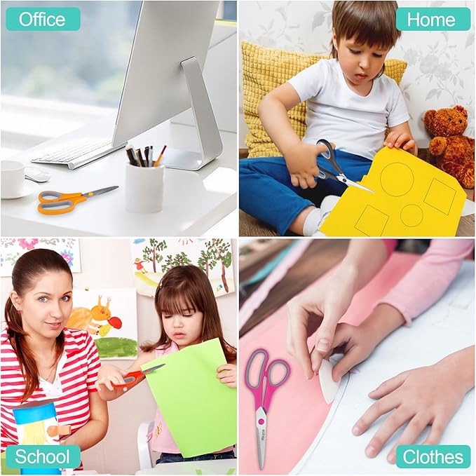 • Definitely Worth Having the Office School Household Scissors: The all purpose scissors can use almost everywhere. Such cutting through paper, thin cardboard, poster board, light ribbon, tape, photos, light fabric, card stock paper, foam, foil, burlap, canvas etc. Perfect for Fabric, sewing, tailoring, quilting, dressmaking, cutting patterns, alterations, hand craft supplies. These all-purpose scissors are a must-have tool.
