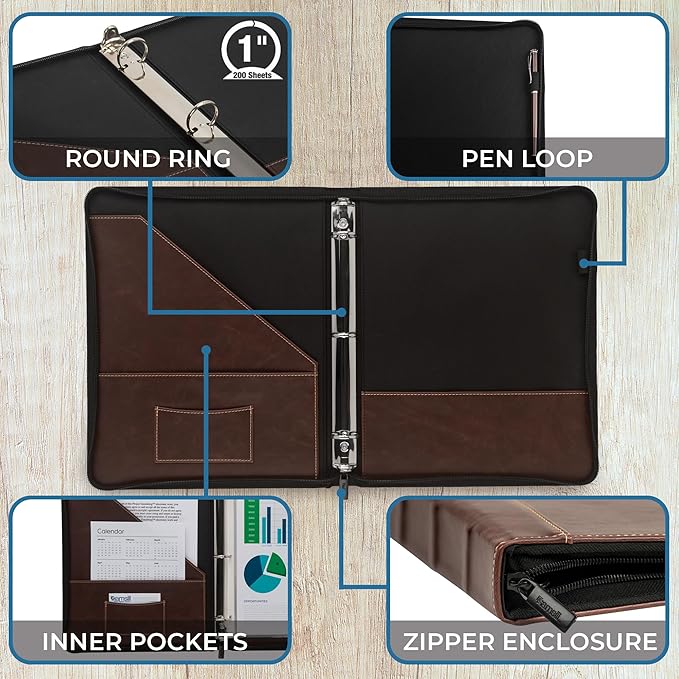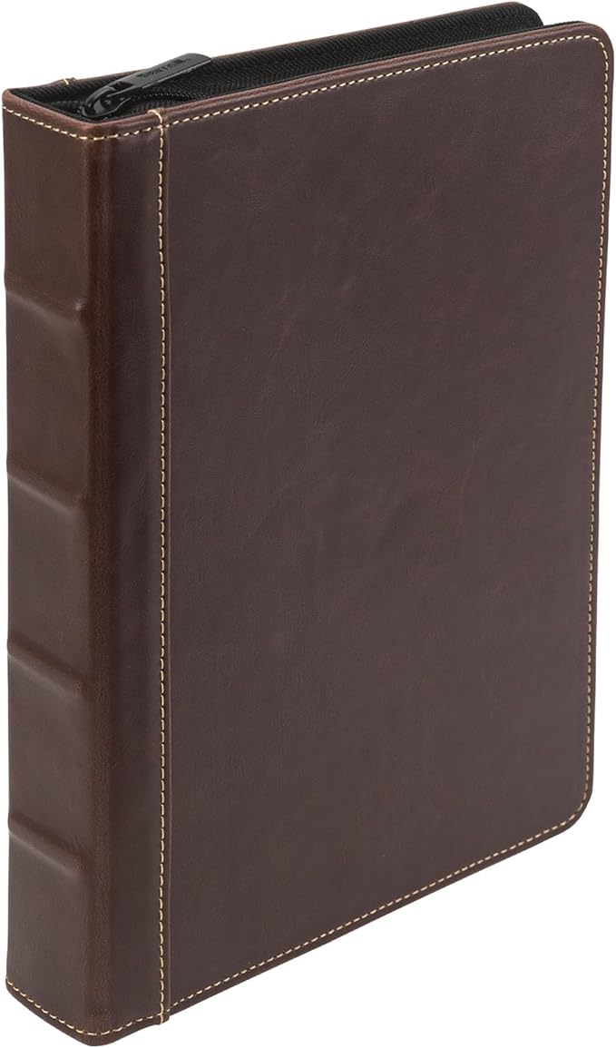 • Stylish and Professional: Crafted with brown faux leather and white contrast stitching, this vintage mini zipper binder adds a touch of classic elegance to your professional look. Beautiful and versatile, this leather binder is perfect for meetings, conferences, and daily use, carrying all your essential documents in style