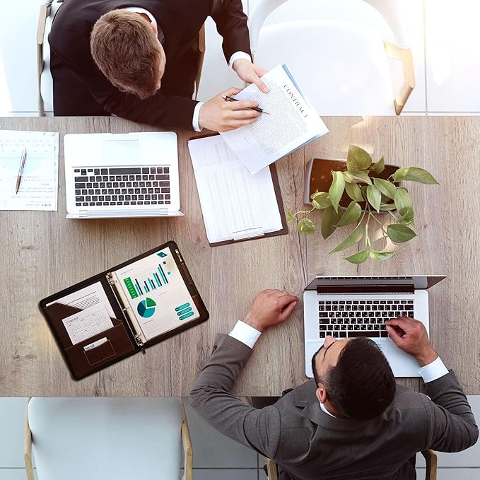 • Multi-Functional Interior Pockets: Stay organized with multiple interior pockets for business cards, loose papers, or other essentials. The thoughtful design of this personal document organizer binder ensures everything has its place, making your leather binder a true organizational powerhouse