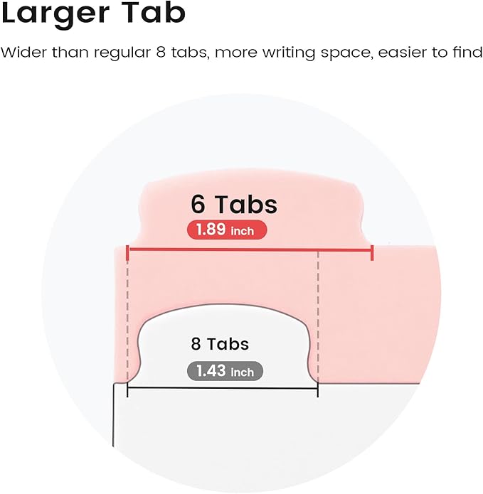 • 6 Tabs: Each divider features 6 large tabs, perfectly sized for 8.5" × 11" paper and designed to fit a standard 3-ring binder. The tabs are clearly visible for easy organization and quick reference.